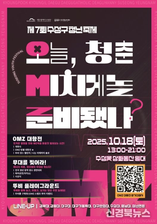 [신경북뉴스] 대구 수성구는 오는 18일 수성못 상화동산 일대에서 ‘2025 제7회 수성구 청년축제’를 개최한다.