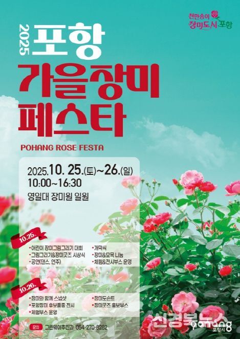 [신경북뉴스] 포항시는 오는 25일부터 26일까지 양일간 영일대장미원에서 ‘2025 포항 가을장미페스타’ 행사를 개최한다.