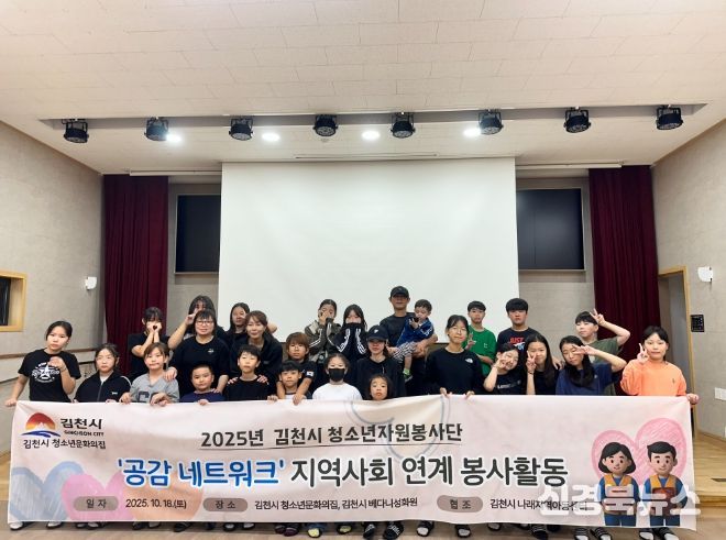 [신경북뉴스] 김천시 청소년문화의집에서는 지난 10월 18일, 청소년 자원봉사단과 나래 지역아동센터 아동들이 한자리에 모여 ‘사랑 가득 김장 나눔' 봉사활동을 펼쳤다고 밝혔다.