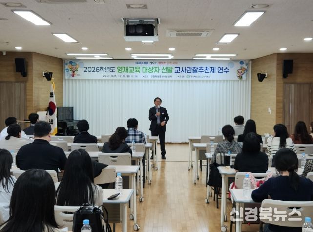 [신경북뉴스] 경상북도김천교육지원청은 2025년 10월 20일 김천학생문화예술센터에서 김천 관내 초·중학교 영재업무 담당 교사 42명을 대상으로 '2026학년도 영재교육대상자 선발을 위한 교사관찰추천제 연수'를 실시했다.