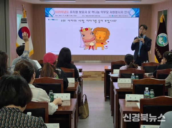 [신경북뉴스] 청송교육지원청은 10월 20일 13시 교육지원청 대회의실에서 관내 유치원 보호자 및 책나눔 학부모 자원봉사자를 대상으로 연수를 실시했다.