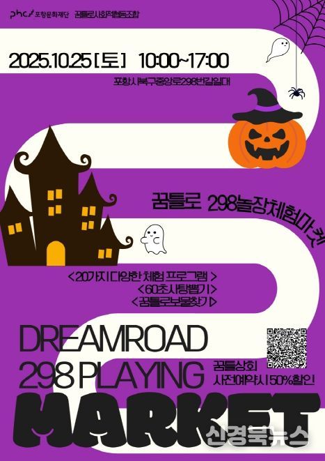 [신경북뉴스] 재단법인 포항문화재단은 오는 25일 오전 10시부터 오후 5시까지 포항 원도심 꿈틀로 일대에서 ‘꿈틀로 체험마켓 298놀장’ 10월 행사를 개최한다.