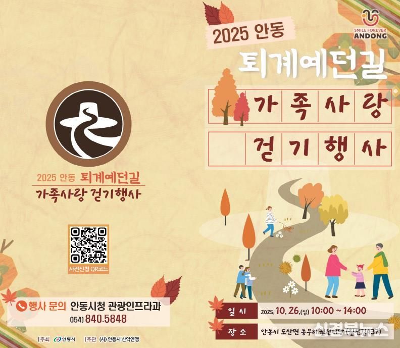 안동시 관계자는 “이번 행사를 통해 안동 퇴계예던길의 아름다움을 널리 알리고, 일상에서 잠시 벗어나 자연과 함께하며 가족의 소중함을 느낄 좋은 기회가 되길 바란다”고 전했다.
