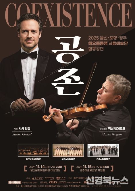 [신경북뉴스] 울산광역시가 주관하는 ‘2025 해오름동맹 시립예술단 합동공연 '공존(COEXISTENCE)'’이 11월 14일 울산문화예술회관 대공연장, 11월 15일 경주예술의전당 화랑홀에서 잇따라 열린다.
