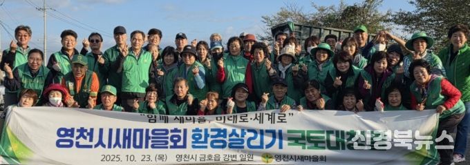 [신경북뉴스] 영천시새마을회는 23일 오수파크골프장 인근 금호강변에서 회원 60여 명이 참석한 가운데 ‘새마을 환경살리기 운동’의 일환으로 정화활동을 펼쳤다.