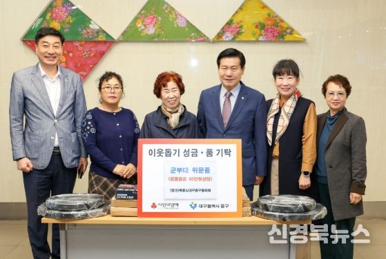 [신경북뉴스] 민족통일대구중구협의회는 지난 22일 대구 중구청 로비에서 8251부대에 위문품을 전달하는 행사를 진행했다.