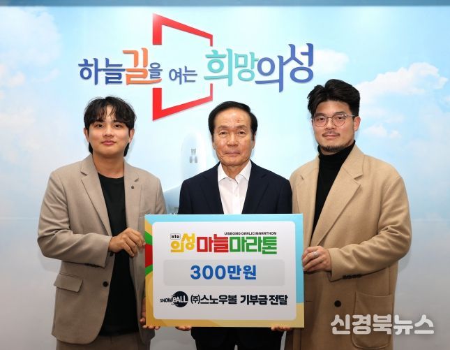 [신경북뉴스] (재)의성군인재육성재단(이사장 김주수 의성군수)은 지난 10월 24일, 청년 창업기업 ㈜스노우볼(대표 이설)이 2025년 의성마늘마라톤대회 수익금 일부인 300만 원을 지역 인재육성을 위한 장학금으로 기탁했다고 밝혔다.
