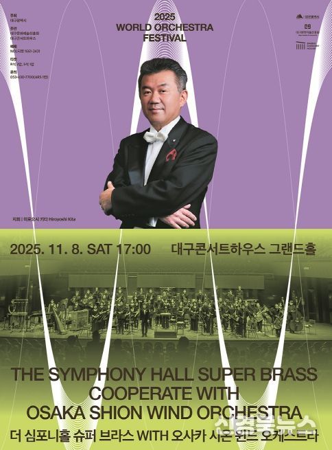 [신경북뉴스] 대구콘서트하우스는 오는 11월 8일 오후 5시, 월드오케스트라페스티벌의 일환으로 ‘더 심포니홀 슈퍼 브라스 WITH 오사카 시온 윈드 오케스트라’ 공연을 개최한다.