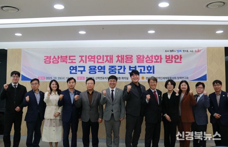 [신경북뉴스] 경북도의회 의원연구단체인'지역인재 채용 활성화 정책 연구회'는 10월 29일 오전 10시30분, 경상북도 산학연유치지원센터 회의실에서 ‘경상북도 지역인재 채용 활성화 방안 연구 용역’ 중간보고회를 개최했다.