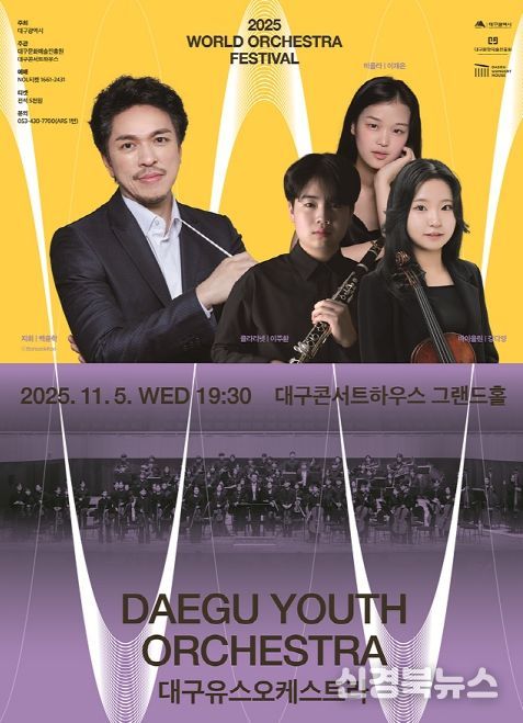[신경북뉴스] (재)대구문화예술진흥원 대구콘서트하우스는 오는 11월 5일 저녁 7시 30분, 그랜드홀에서 ‘2025 월드오케스트라페스티벌’의 일환으로 대구유스오케스트라의 공연을 개최한다.