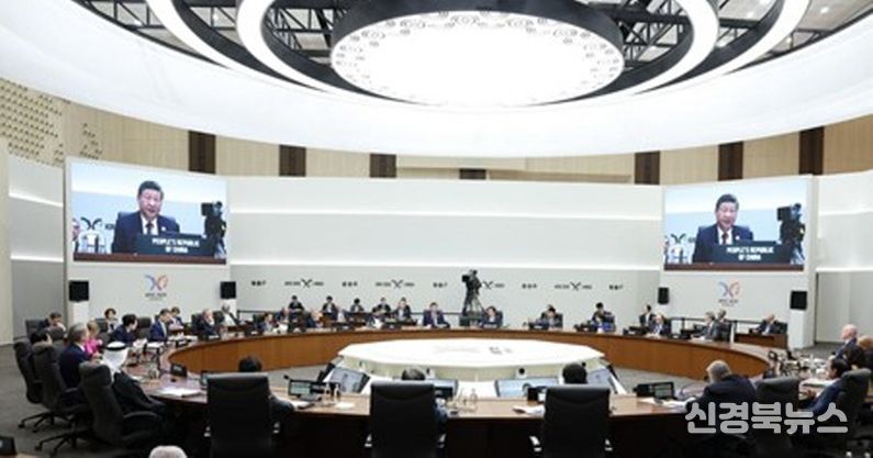[신경북뉴스] (한국 경주=신화통신) '제32차 아시아태평양경제협력체(APEC) 경제체 지도자회의' 제1세션이 31일 오전 경주 화백컨벤션센터에서 열렸다. 시진핑(習近平) 중국 국가주석은 이날 회의에 참석해 '보혜·포용의 개방형 아시아태평양 경제를 공동 건설하자'는 제목의 중요 연설을 했다.