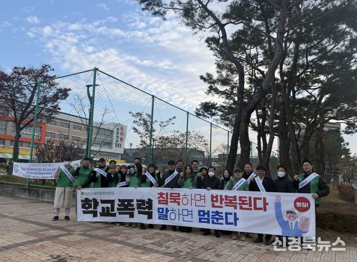 [신경북뉴스] 김천시청년새마을연대(회장 이동협)와 김천경찰서는 24일 아침, 율곡초등학교 및 율곡중학교 앞에서 학교폭력 근절 합동 캠페인을 전개했다.