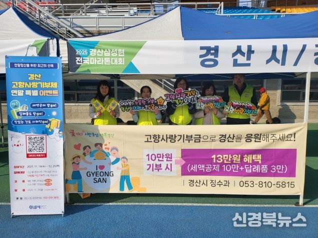 [신경북뉴스] 경산시는 23일 경산시민운동장에서 시작하여 경산시 일대를 돌아오는 2025 삼성현 전국 마라톤대회에서 경산 고향사랑기부제 홍보를 실시했다.