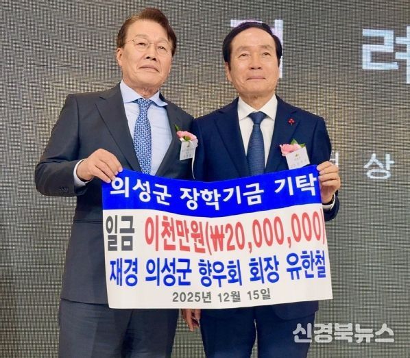 [신경북뉴스] 재단법인 의성군인재육성재단(이사장 김주수 의성군수)은 지난 15일 재경의성군향우회 유한철 회장(서울승합 대표)이 지역 인재 육성을 위해 사용해 달라며 장학금 2천만 원을 의성군에 전달했다고 밝혔다.