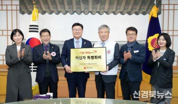 [신경북뉴스] 전북특별자치도의회 문승우 의장(군산4)은 19일 의장실에서 대한적십자 전북특별자치도지사 김홍식 회장에게 적십자 특별회비를 전달했다.
