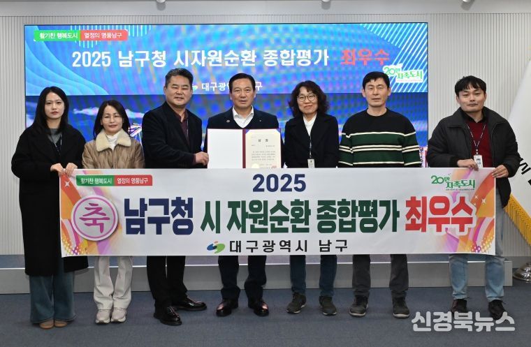 [신경북뉴스] 대구 남구는 2025 대구시 자원순환행정 종합평가에서 9개 구·군 가운데 ‘최우수’(1위)를 차지하며, 자원순환 선도 도시 명품 남구의 위엄을 알렸다.