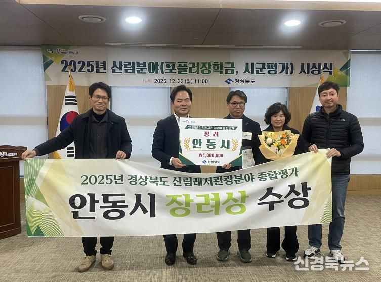 [신경북뉴스] 안동시는 경상북도 주관 12월 22일 ‘2025년 산림레저관광분야 종합평가’에서 장려상을 수상했다고 밝혔다.