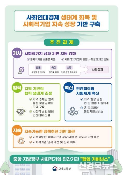 [신경북뉴스] 고용노동부는 가치, 협력, 혁신, 지속가능성을 기본전략으로 제시하고 사회적기업 생태계 회복과 지속가능한 성장 기반 구축에 본격적으로 나선다.