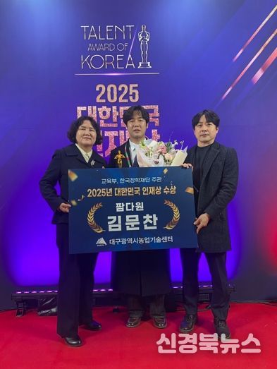 [신경북뉴스] 대구 청년농업인 김문찬 팜다원 대표가 12월 24일 세종시 정부세종컨벤션센터에서 열린 ‘2025년 대한민국 인재상’ 시상식에서 대한민국 인재상을 수상했다.