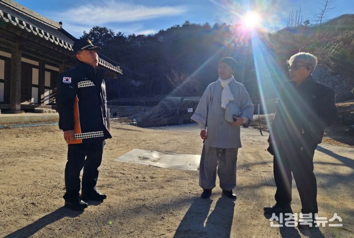 [신경북뉴스] 김천소방서(서장 송영환)는 2025년 경북지역에서 발생한 초대형 산불을 계기로 겨울철 화재 위험에 대한 경각심이 높아진 가운데, 6일 증산면에 위치한 ‘문화재소장 수도암’을 방문해 화재 예방을 위한 안전관리 실태를 점검했다고 밝혔다.