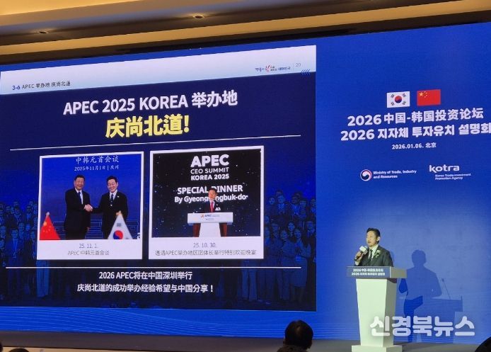 [신경북뉴스] 경상북도는 6일 중국 베이징에서 열린 산업통상부 주관 지자체 투자유치 설명회에 참가해 중국 기업과 투자자를 대상으로 경상북도의 투자환경과 미래 협력 전략을 집중적으로 소개했다.