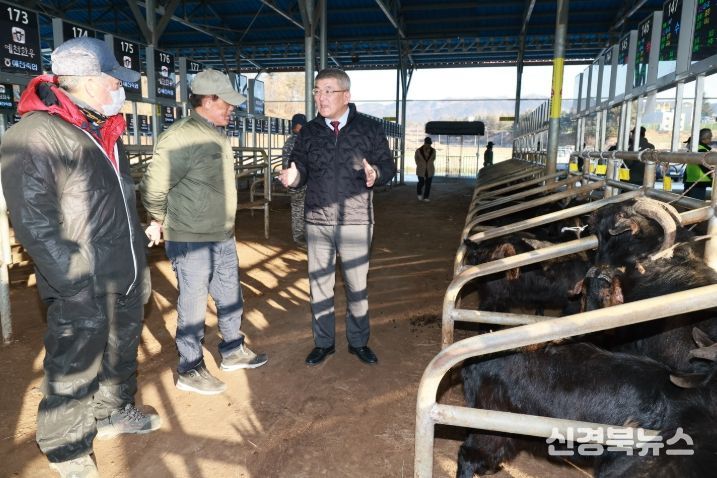 [신경북뉴스] 예천군은 14일 오전, 예천가축시장에서 열린 ‘2026년 새해 첫 염소 경매’ 현장을 찾아 출하 상황을 점검했다.