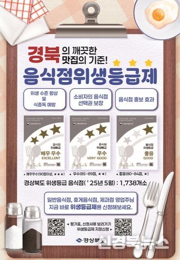 [신경북뉴스] 영주시보건소(소장 김문수)는 시민이 안심하고 외식할 수 있는 환경을 조성하기 위해 음식점 위생등급제 참여 업소를 연중 상시 모집하며, 위생 관리 수준 향상에 힘쓰고 있다.