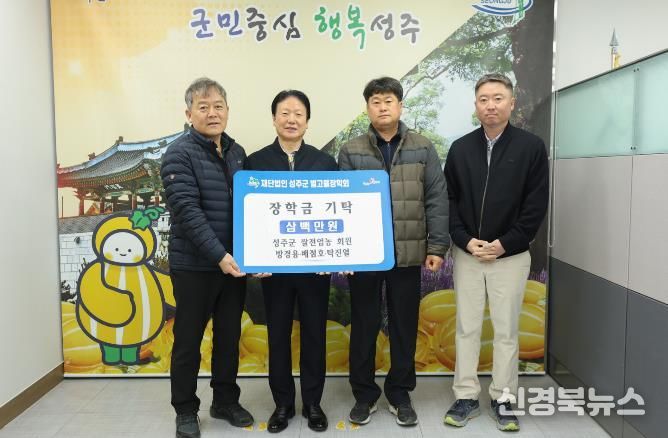 [신경북뉴스] 지난 19일 성주군 쌀전업농회 회원 방경용 · 배점호 · 탁진열씨가 지역인재를 위한 장학금 각 1백만원씩 총3백만원을 (재)성주군별고을장학회에 기탁했다.