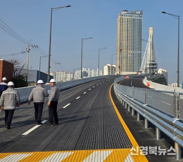 [신경북뉴스] 포항시는 효자~상원 간 도로건설 공사의 핵심 구간인 해오름대교의 임시 개통을 앞두고 시민 안전과 원활한 차량 흐름을 위한 교통시스템 점검을 실시했다.