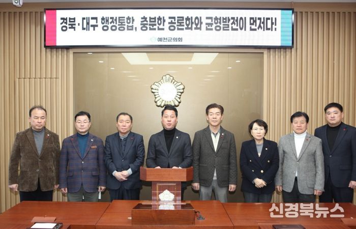 예천군은 대구·경북 행정통합은 ▲현 경상북도청을 통합특별시 행정의 중심으로 명확히 하고 ▲재정지원 인센티브의 도청신도시 및 경북 북부권 우선 배분과 기초지자체 자치권 보장 ▲산업 활성화와 공공기관 이전을 통한 경북도청 신도시 완성이 반드시 전제되어야 하며. 이러한 조건이 명확히 보장되지 않을 경우 행정통합에 동의하기 어렵다는 입장을 분명히 했다.