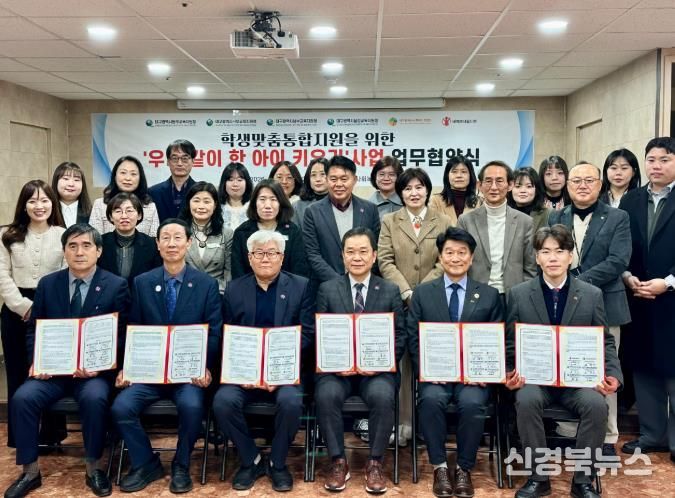 [신경북뉴스] 대구 4개 교육지원청(동부·서부·남부·달성)은 2월 9일 오전 10시, 대구광역시사회복지관협회, 세이브더칠드런 동부지역본부와 함께 학생맞춤통합지원을 위한‘우리 같이 한 아이 키우기’ 사업 추진을 위한 업무협약을 체결한다.