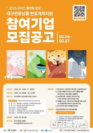 [신경북뉴스] 대구광역시와 대구문화예술진흥원 관광본부는 지역 관광사업체의 경쟁력 강화를 위해 ‘2026년 온라인 플랫폼 활용 대구 관광상품 판로개척 지원사업’을 추진한다.