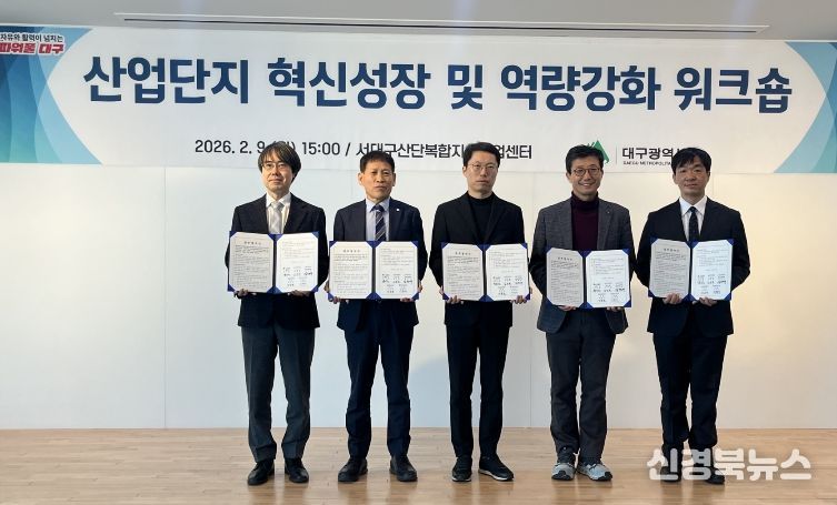 [신경북뉴스] 대구광역시는 2월 9일 서대구산단복합지식산업센터에서 산업단지 유관기관이 참여하는 ‘산업단지 혁신성장 및 역량강화 워크숍’에서 유관기관과 업무협약(MOU)을 체결했다.