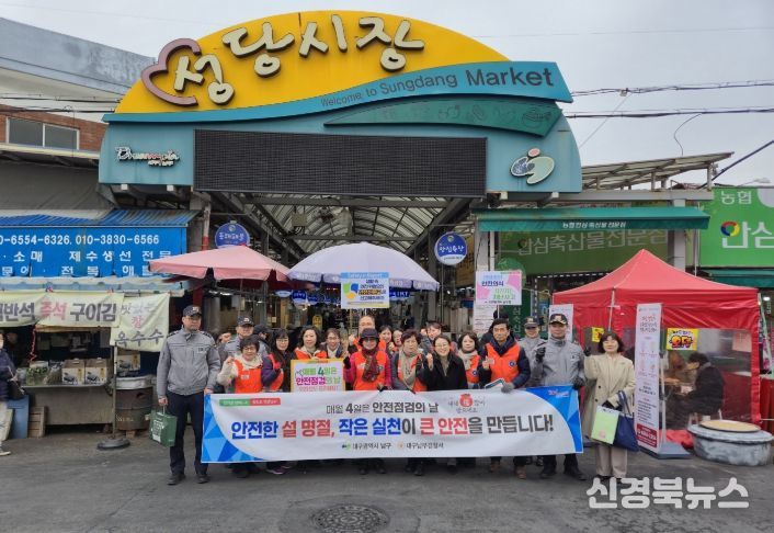 [신경북뉴스] 대구 남구는 2월 10일 대명4동 청춘골목 조성지 일원의 성당시장에서 설 명절을 앞두고 지역 주민의 안전의식을 높이기 위한 안전문화운동 캠페인을 실시했다.