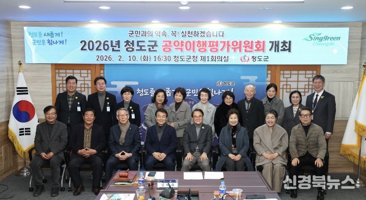 [신경북뉴스] 청도군은 지난 10일 군청 제1회의실에서 ‘2026년 청도군 공약이행평가위원회’를 개최하고 민선 8기 공약사항에 대한 추진 상황을 점검했다.