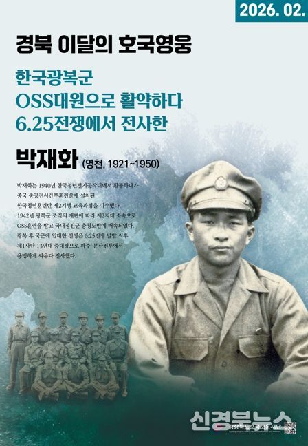 [신경북뉴스] 경상북도호국보훈재단은 2026년 ‘경북 이달의 호국영웅’ 2월의 주인공으로 영천 출신 박재화 선생(朴載華, 1921~1950)을 선정했다고 밝혔다.