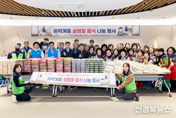 [신경북뉴스] 울릉군 자원봉사센터는 설 명절을 맞아 소외계층을 위해 따뜻한 나눔 행사를 열었다. 지난 2월 10일(화)과 11일(수) 울릉군 전 지역 취약계층 102세대를 직접 방문해 정성껏 준비한 명절 음식을 전달했다.