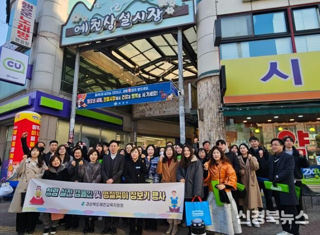 [신경북뉴스] 경상북도예천교육지원청은 2월 12일 예천읍 상설시장에서 직원들과 함께 설 맞이 전통시장 장보기 행사를 실시했다.
