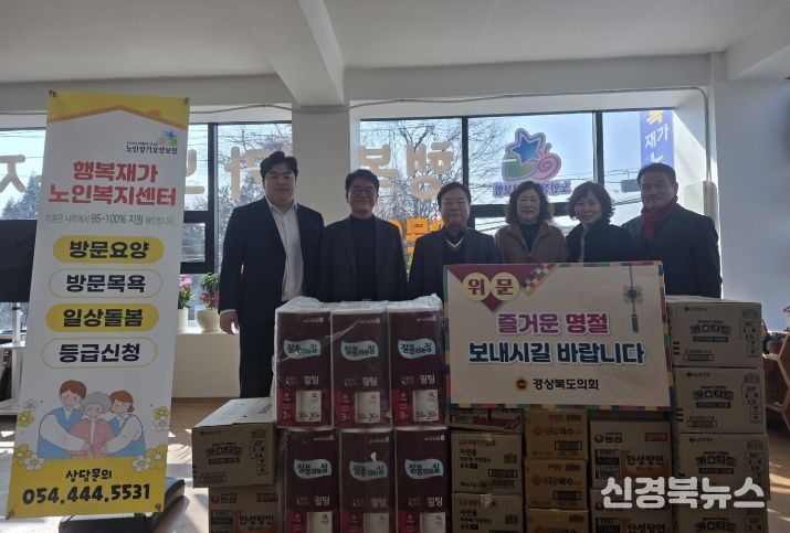 [신경북뉴스] 경상북도의회는 민족의 대명절인 설을 맞아 허복 도의원(국민의힘, 구미3)과 의회사무처 직원들이 2월 12일 구미시에 위치한 ‘행복재가노인복지센터’를 방문해 관계자들을 격려하고 따뜻한 위문품을 전달했다. 이번 방문은 지역 사회 어르신들과 함께하는 따뜻한 명절 분위기를 조성하고, 노인 복지 현장의 목소리를 직접 듣기 위해 마련됐다.