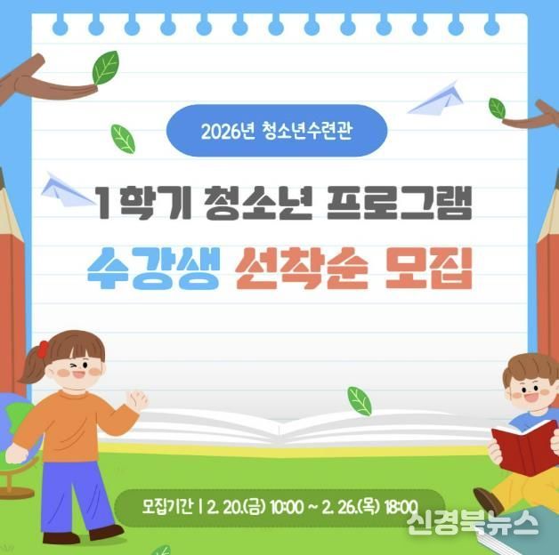 [신경북뉴스] 예천군은 오는 2월 20일 오전 10시부터 2월 26일 오후 6시까지 ‘2026년 청소년수련관 1학기 프로그램’ 수강생을 선착순 모집한다고 밝혔다.