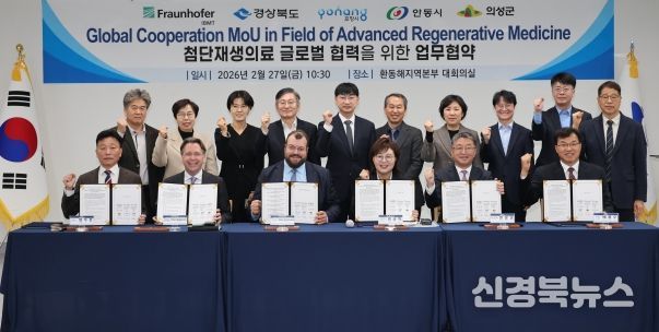 [신경북뉴스] 포항시가 경상북도, 안동시, 의성군, 그리고 독일 프라운호퍼 생체의공학 연구소(IBMT)와 함께 첨단재생의료산업 발전을 위한 양해각서(MOU)를 경상북도 동부청사에서 체결했다.