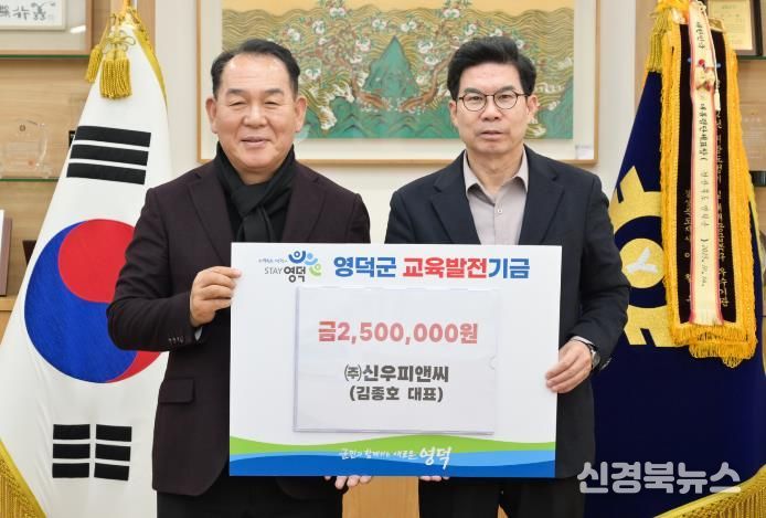 [신경북뉴스] ㈜신우피앤씨 김종호 대표가 지난 3일 영덕군에 교육 발전을 위한 기금 250만 원을 전달했다.
