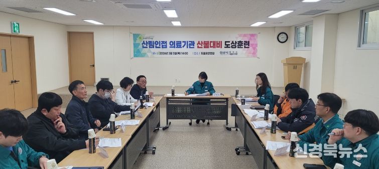 [신경북뉴스] 경산시는 도움요양병원 다목적홀에서 산림 인접 의료기관의 산불 대응 능력 향상을 위한 도상 훈련을 진행했다.