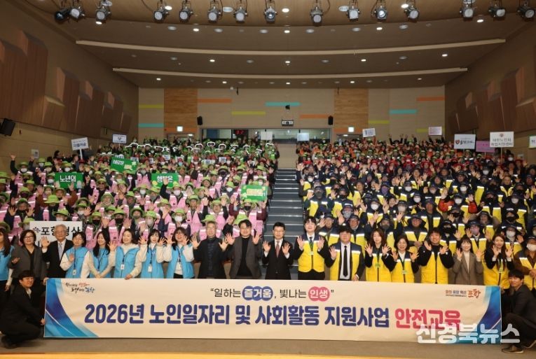 [신경북뉴스] 포항시는 6일 평생학습원 덕업관에서 노인일자리 수행기관장과 소속 참여자 400여 명이 참석한 가운데 2026년 노인일자리 및 사회활동 지원사업 참여자를 대상으로 안전교육을 진행했다.