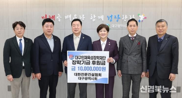 [신경북뉴스] 대한전문건설협회 대구광역시회가 대구인재육성장학재단에 1천만원의 장학금을 전달했다.
