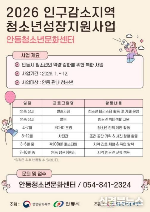 [신경북뉴스] 안동청소년문화센터가 지난해에 이어 2년째 인구감소지역 청소년을 위한 성장지원사업을 이어간다.