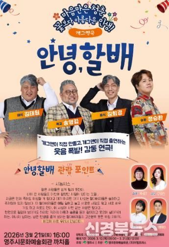 [신경북뉴스] 영주시문화예술회관이 3월 21일 오후 4시 까치홀에서 개그 연극 ‘안녕, 할배’를 무대에 올린다.