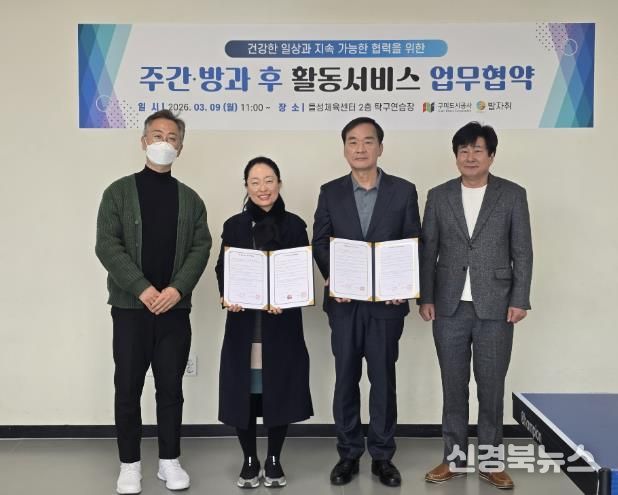 [신경북뉴스] 구미도시공사 들성생활체육센터가 지난 9일 구미 발자취 주간활동센터와 협약을 맺고, 지역 내 사회적 약자를 위한 복지와 건강 증진에 나섰다.