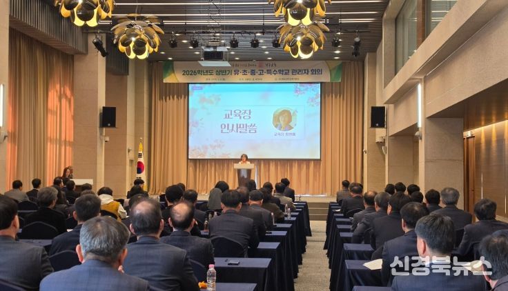 [신경북뉴스] 경상북도경주교육지원청은 3월 9일 황룡원 1층 대연회장에서 2026학년도 상반기 학교 관리자 회의를 열어 주요 업무를 안내하고 학교 현장과의 협력 방안을 논의했다.