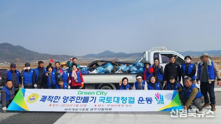 [신경북뉴스] 바르게살기운동영주시협의회가 지난 10일 안정면 비행장 주변에서 환경정화 활동을 진행했다.